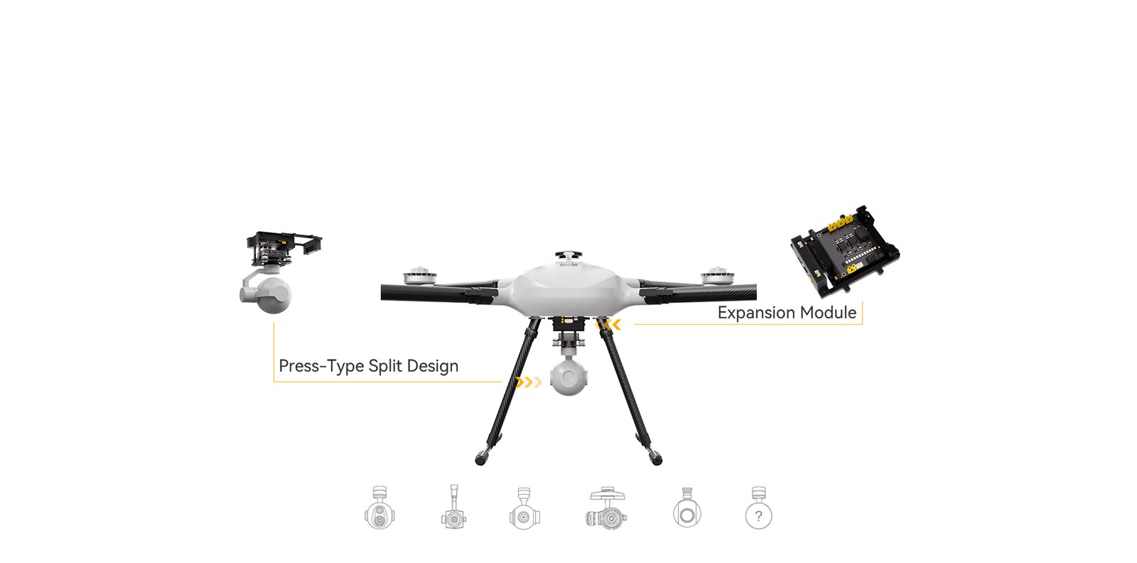 Multi-Mount Compatibility: Split-type quick-release connectors compatible with most payload devices and internal expansion for customized demands.