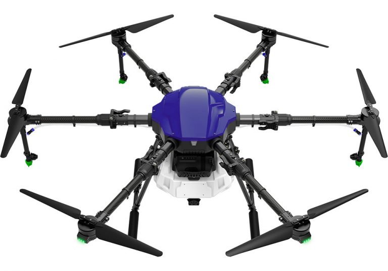 The Reactive Drone Agric RDE616P is a 20-liter, 6-rotor electric UAV designed for spraying agricultural fields with agrochemicals, fertilizers, and micronutrients.