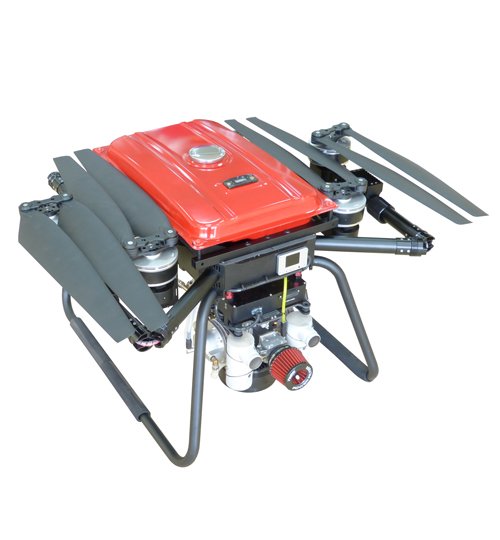 The drone is powered by a 7.5 kW gasoline-electric hybrid system with a 15-liter fuel tank.