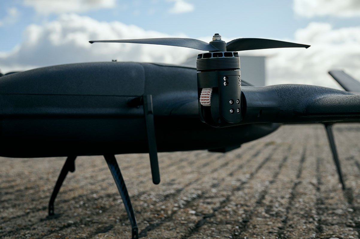 - Combines vertical take-off and landing with fixed wing flight efficiency
