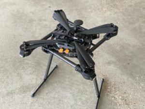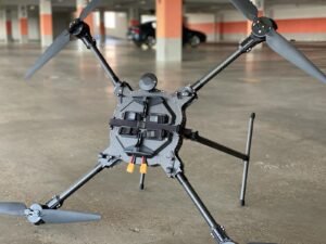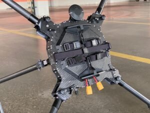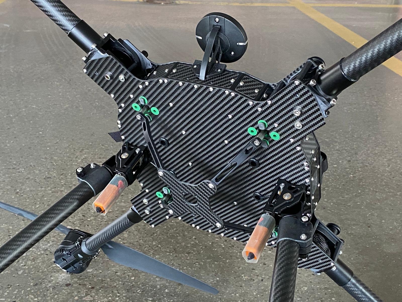The airframe consists of four reinforced carbon fiber arms with a folding mechanism secured by a double locking system, ensuring both structural rigidity in flight and compactness during transport. Thanks to its foldable construction, the Sonda platform is easy to deploy and convenient to carry between operational sites.