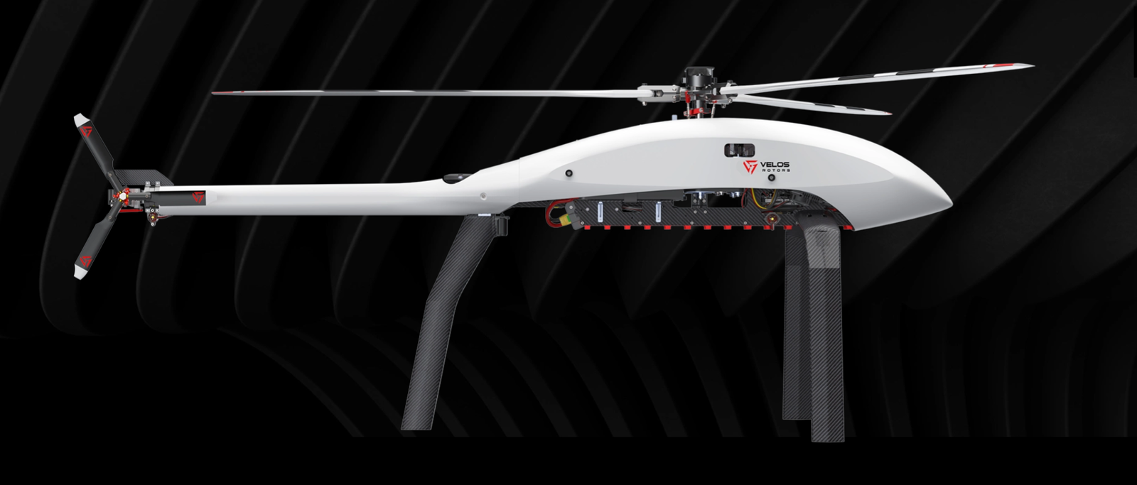 Unlike most UAV helicopters that are built with common hobby-grade parts, the Velos V3 D-FEND was designed from scratch with three core objectives: